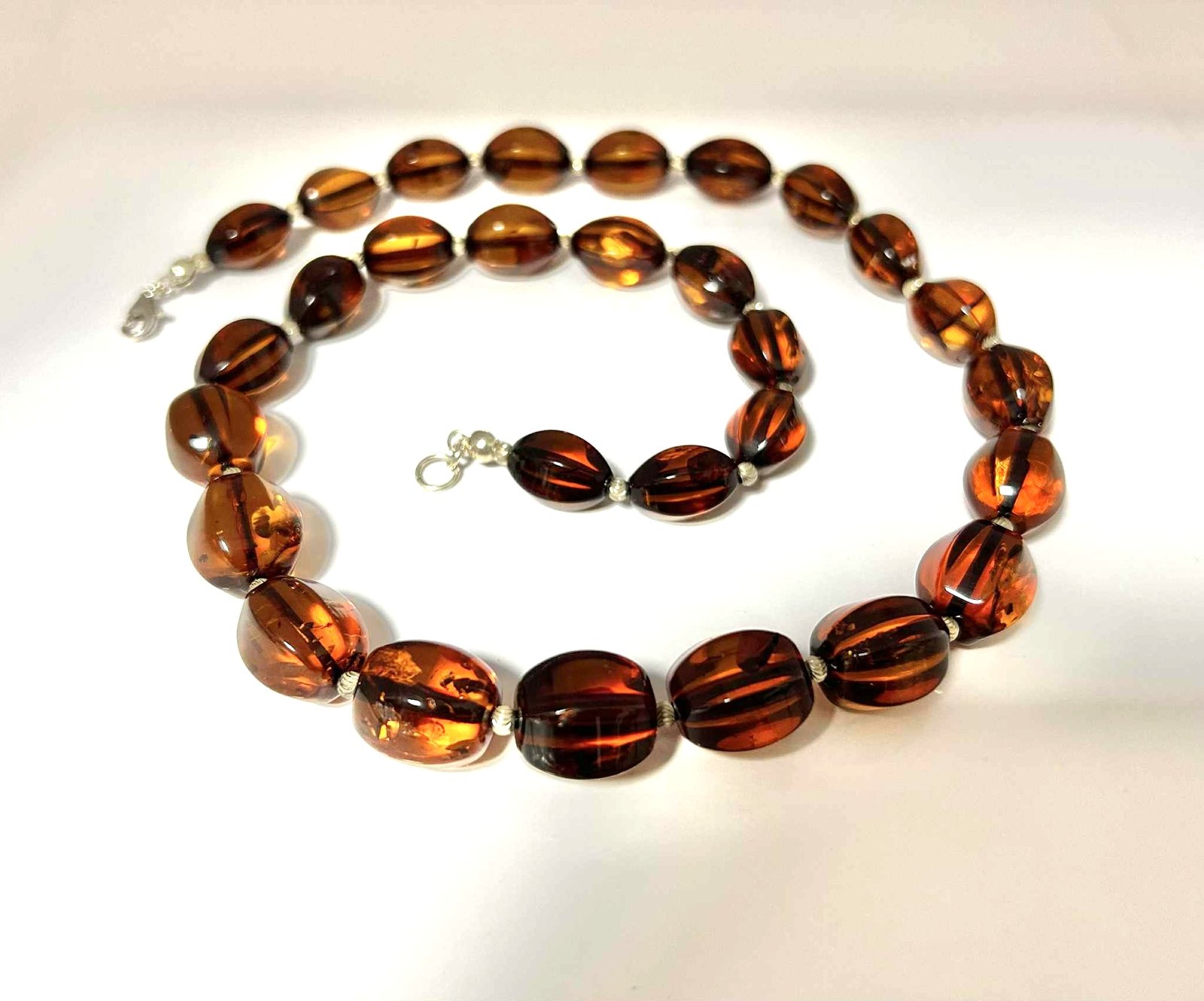 Natural Baltic amber necklace, created on nylon threads, knots tied between each amber