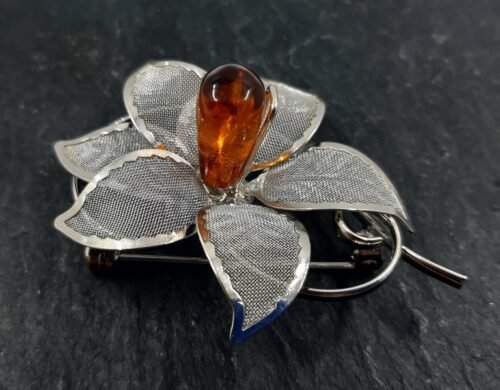 Awesome amber brooch „Flower”
