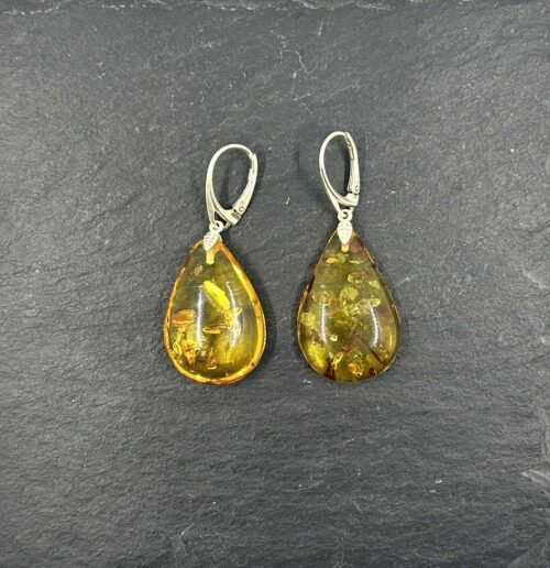Lašo formos auskarai iš natūralaus Baltijos gintaro
