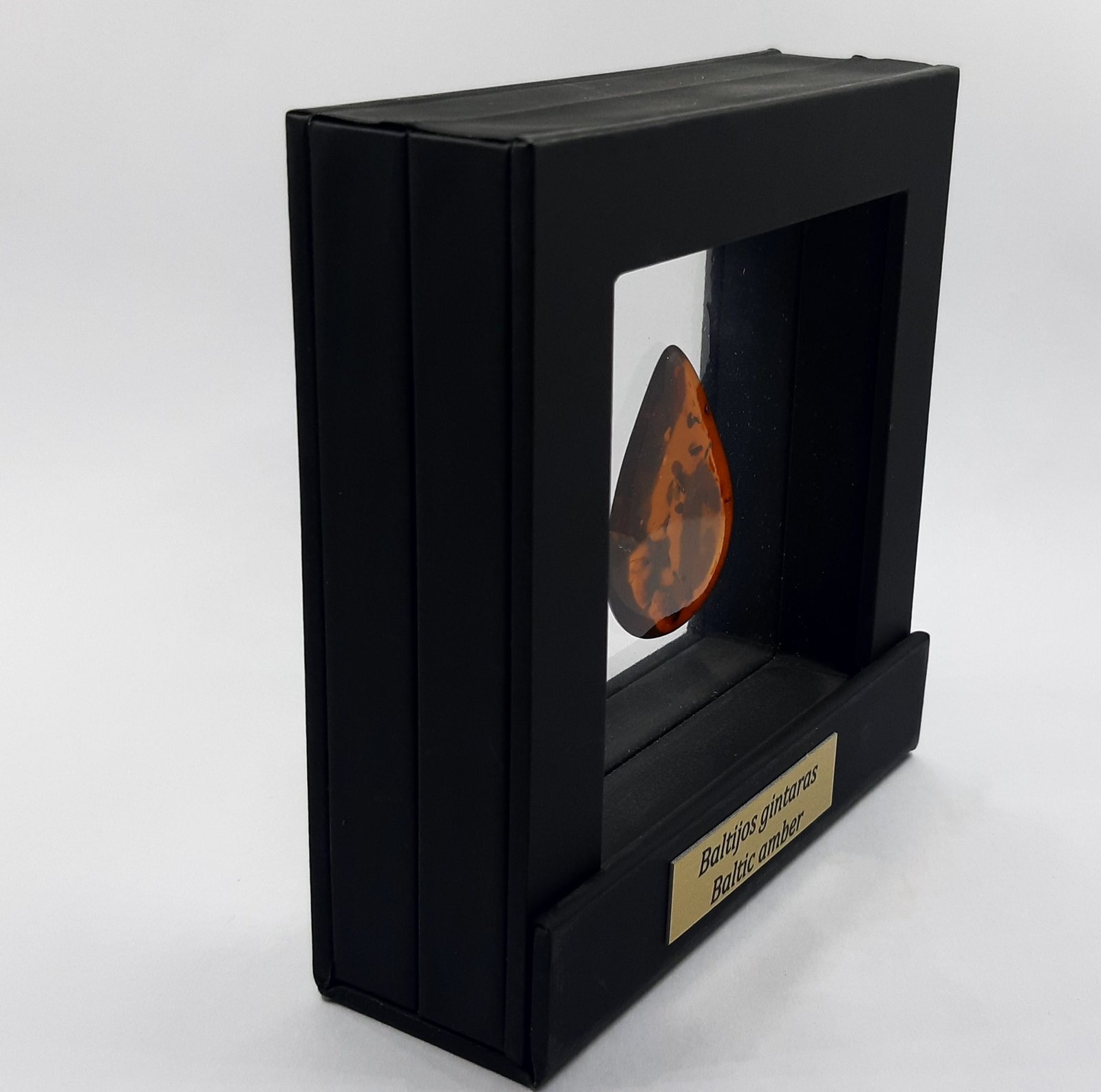 Gintaro suvenyras „Baltijos lašas” rėmelyje