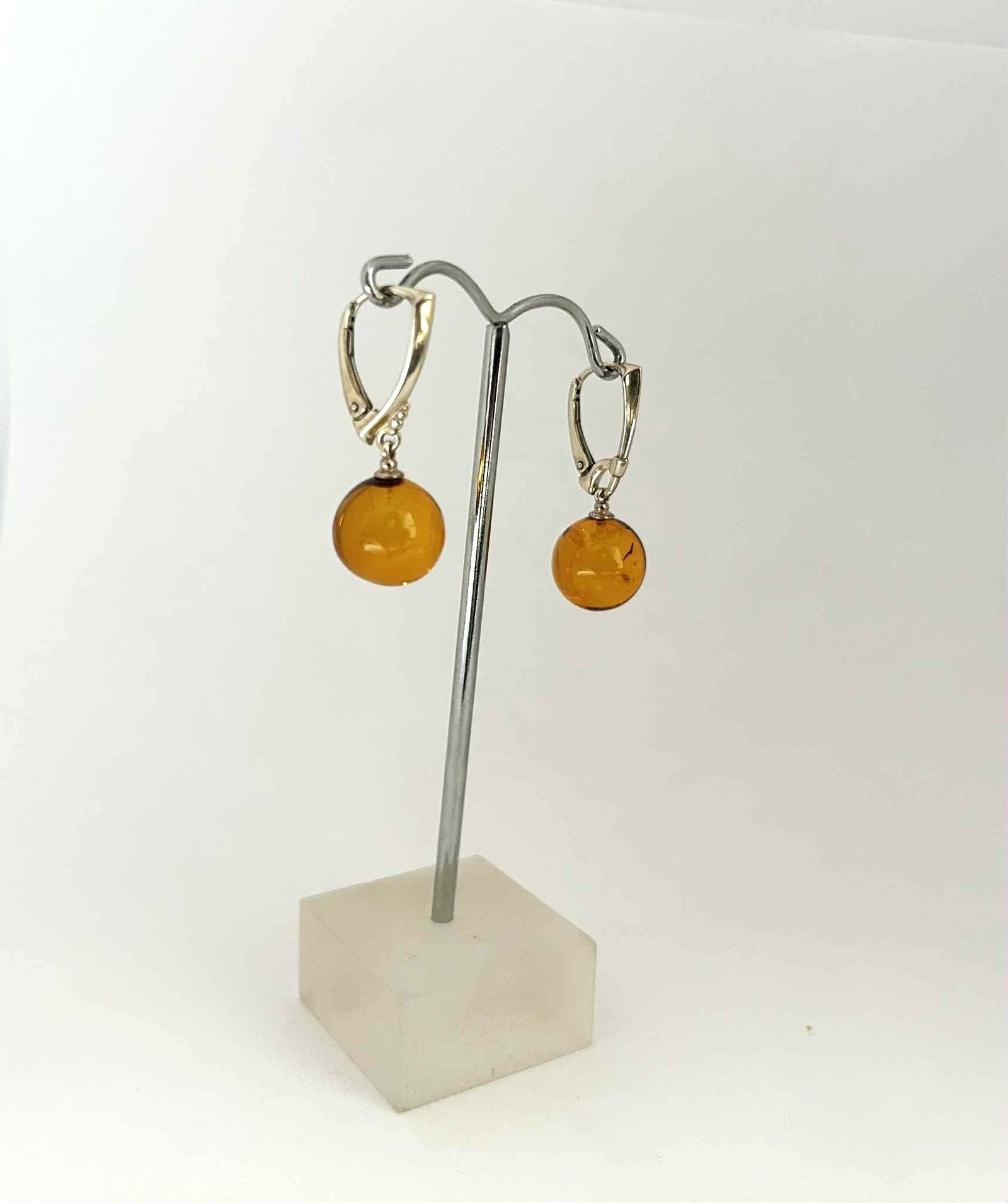 Auskarai su natūralaus gintaro kamuoliais
