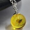 Gintarinis pakabukas su inkliuzu (musių vabzdys) su grandinėle