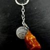 Raktų pakabukas su natūralaus Baltijos gintaro gabalėliu ir sena lietuviška moneta