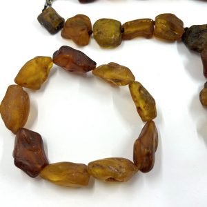 Pagaminta iš natūralaus, tikro Baltijos gintaro laisvos formos, nešlifuota, kiekvienas gintaras surištas vienas nuo kito